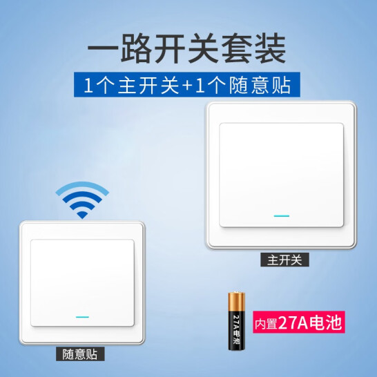 品益 床頭遙控開關無線遙控220v燈家用智能面板雙控隨意貼臥室免布線 一開白套裝